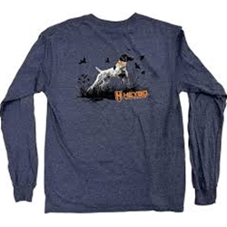 HEYBO HEY2506S 100% PRE-SHRUNK COTTON POINTER DOG AND DUCKS LS TEE DARK BLUE SIZE SMALL