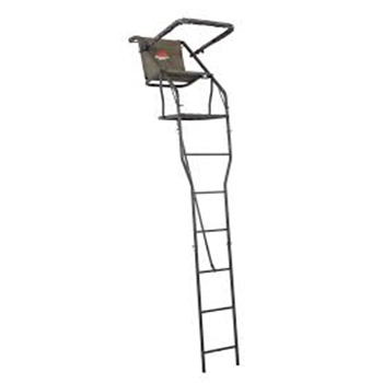 FEATURES Exclusive patented ComfortMAX contoured tight-sling seat Durable powder-coated finish Oval steel construction Comfortable, quiet, easy setup Adjustable padded shooting rail Accessory hooks SPECS MODEL # L-124-SL UPC # 850002711776 MATERIAL: POWDER-COATED STEEL CAPACITY 300 LBS. WEIGHT 64 LBS. HEIGHT 18 FT. PLATFORM 20” W x 22” L SEAT SIZE 19.5” H x 20” W x 16” L ALSO INCLUDES: 35’ SafeLink Safety Line Stabilizing Straps Tree Brace