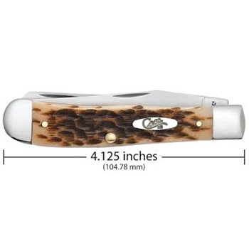 This Trapper is a part of the Amber Bone Family. Our Amber Bone color and Peach Seed jig are signatures of the Case brand and the true heart of the case line. The Trapper gets its name from the consumer it was designed for. Because of its basic trapping and skinning blades and its light weight, it is a must-have knife for those who trap small game. It is a jack knife with two full length blades; a slender Clip and a long Spey. The Clip blade is commonly used as a multi-purpose blade and preferred for detail work while the Spey blade is commonly used as an all-purpose utility blade. This knife is constructed with Case Tru-Sharp™ stainless steel which is a special high-carbon steel that helps the blades hold an edge longer than conventional steel. It also offers extraordinary blade strength and corrosion resistance. Comes conveniently packaged in a box. Made in Bradford, PA, USA from domestic and imported materials. Mirror-polished Tru-Sharp™ surgical stainless steel blades Clip and Spey blades Peach seed jigged Amber Bone handle with Case oval script shield; Clip on back of knife Length: 4.13 inches closed and 4.0 ounces Limited lifetime warranty